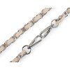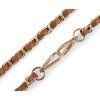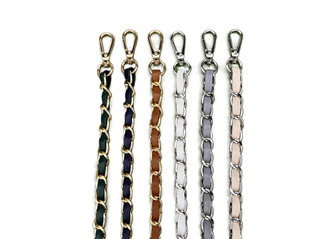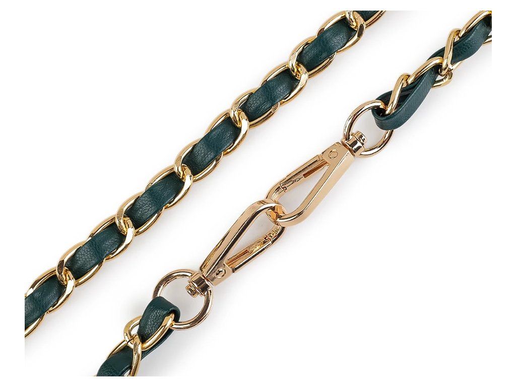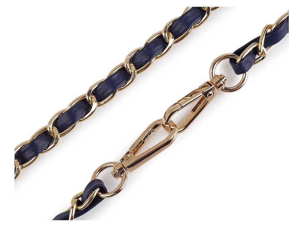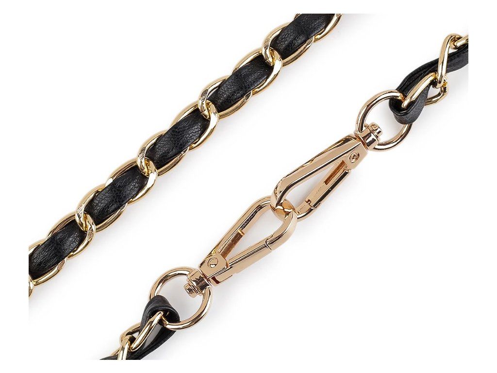 Kovový řetízek je stylově propletený páskem z eko kůže, což mu dodává atraktivní vzhled. Skvěle se hodí pro menší kabelky, psaníčka nebo pouzdra na mobil. Na obou koncích je opatřen karabinkami pro snadné připnutí.