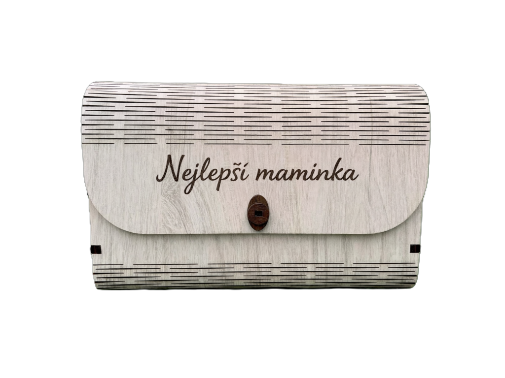 Minimalistická dřevěná kabelka s nápisem "Nejlepší maminka" zaujme jemnými průřezy po obvodu a decentní mandalou na bočních stranách. Světlé provedení doplňuje stříbrný řetízek, který podtrhuje její čistý a moderní vzhled. Lehká, pevná a originální – ideální doplněk pro každodenní i elegantní outfit i jako stylový dárek pro blízkou osobu.